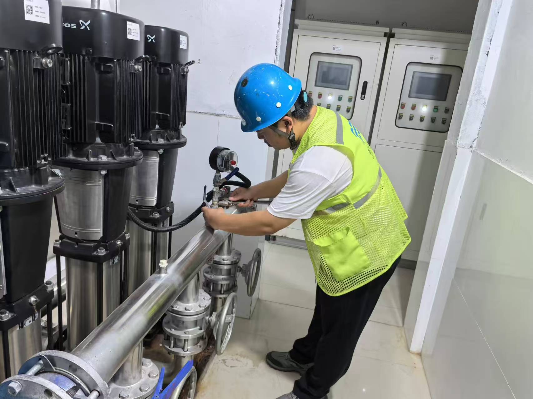 以凝聚“聯合”力量“穿針”,于滿足城市供水需求處“引線”,江蘇聯合水務科技股份有限公司保障供水安全的“針腳”越織越密。在一次次高峰供水無虞的背后,是跨部門合作、全舉措保障的共同作用結果。 多部門聯動,解決“二次供水”低壓問題 高層出現水壓低的原因可能蟄伏于二次供水系統中的每一個角落,可謂是棘手問題。近日,紫金名門小區有兩棟用戶反映水壓小,管網人員聯合二次供水巡檢員進行多次排查無果后,隨即請示機電設備部支援,經過三部門聯合排查,最終將“病因”鎖定在廢棄增壓泵房內,此次排查充滿波折,但各部門協同讓難題迎刃而解。