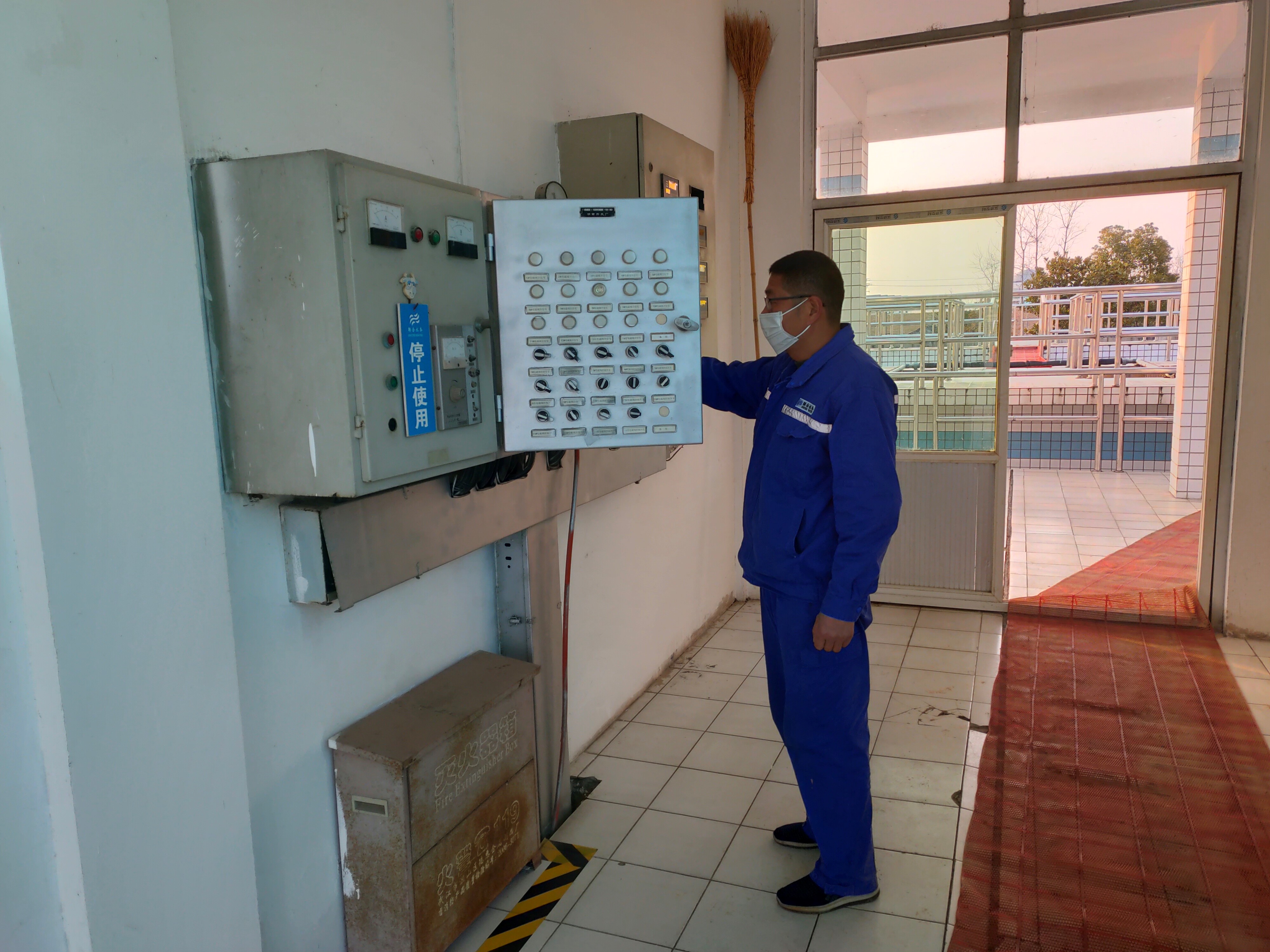 圖2:水廠值班人員日常工作 安全供水責任重大,值班人員不敢有絲毫馬虎,他們每隔1個小時,就要圍繞加藥間、沉淀池、過慮池、消毒池、送水泵房等各道工序運行情況進行巡視,確保發現問題及時進行處理,保證水廠高質量、高標準的運行。同時還要根據原水水質和水量的變化及時增(減)藥劑的用量,確保供水安全達標。 受疫情影響,雖然水質檢測人員不能全員到崗,但卻絲毫沒有影響到工作的正常進展。為了保證疫情期間水質達標,水質檢測中心進一步加強了日常的水質檢測力度,增加了檢測水質的頻率。在水廠每小時對工序水質進行連續檢測的基礎上,水質檢測人員每天對水源水和出廠水的濁度和余氯、耗氧量、氨氮和微生物等11項指標進行檢測,確保水源水質安全,做到出廠水水質達標;對管網水25個監測點每周采樣、檢測一次。并在本月中旬對原水、出廠水以及末梢水進行了42項常規檢測。最大程度上強化從源頭到龍頭全過程。經統計,今年以來,城區供水水質綜合合格率達到100%。 時刻待命,迅速出擊 新冠肺炎期間,市民居家不能外出,保障供水就是保障市民生存的生命線,任務艱巨,刻不容緩。咸寧聯合水務高度重視,進一步完善各類應急預案,搶修隊24小時待命,確保一旦發生突發事件,能快速、有序、有效應對。