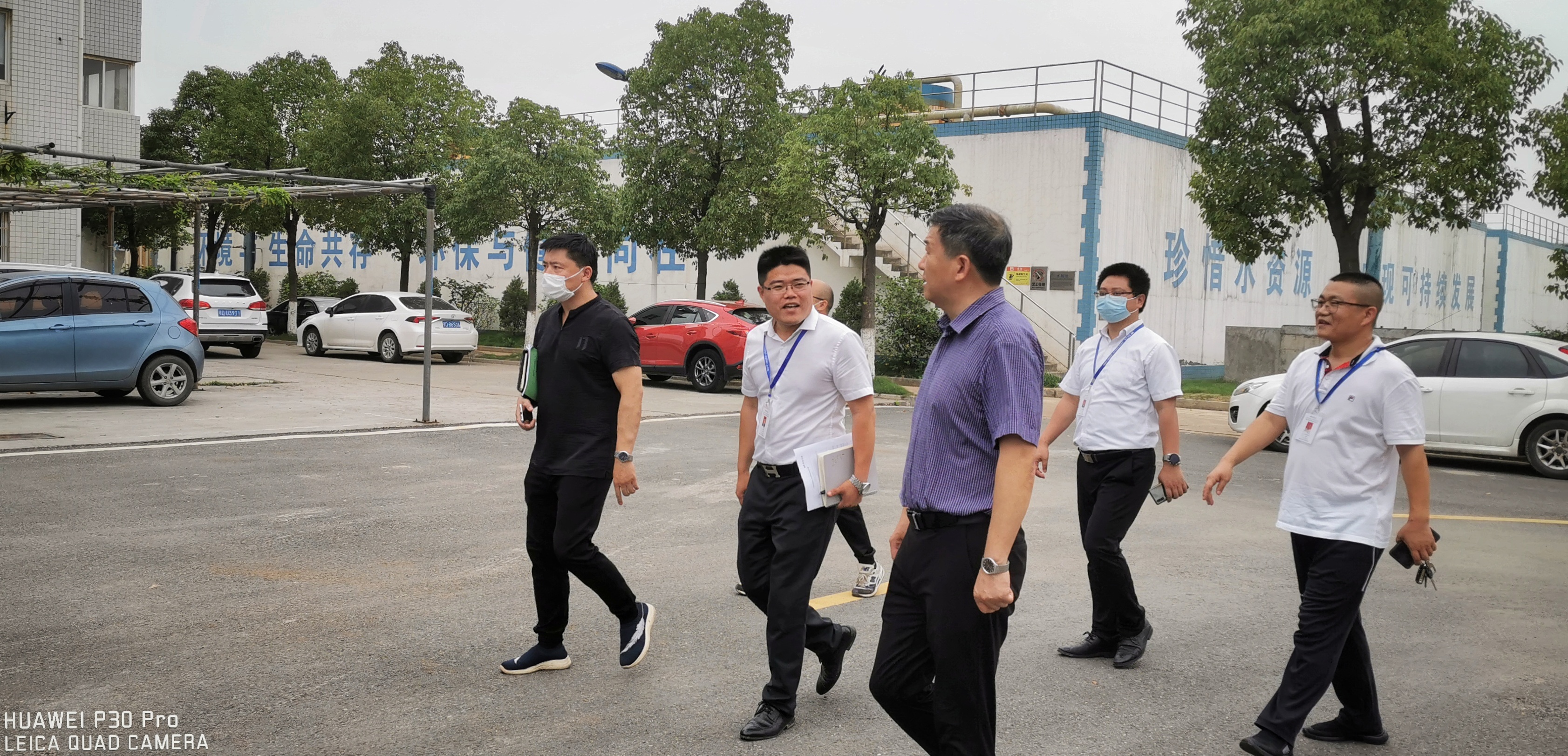 6月8日下午,荊州市開發區黨工委書記周漢中、開發區管委會副主任陳俊巖及調研員劉良元、住建局局長李建宏、開發區環保局局長丁家軍一行頂著高溫蒞臨荊州申聯水務有限公司、荊州申聯環境科技有限公司(以下簡稱“荊州申聯公司”)視察指導工作,荊州申聯公司總經理許應濤、商務副總經理蔡猛、生產副總經理傅云及人事行政副總經理劉斌全程陪同。